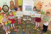 Ребята младшего дошкольного возраста прошли посвящение в Эколята. Дома с родителями они нарисовали любимых героев. Педагоги организовали выставку рисунков "Эколята сохраняют природу"