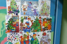 В фойе детского сада проходиит выставка детских рисунков под названием "Как встречают новый год люди всех земных широт"