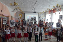 В детском саду прошло торжественное мероприятие, посвящённое Дню Победы! В честь этого великого праздника было организовано шествие "Бессмертного полка". Держа в руках портреты своих родственников - участников ВОв, труженников тыла, педагоги и воспитанники были преисполнены чувством гордости и благодарности за мирное небо над нашими головами! На празднике прозвучали стихи и песни о войне, были исполнены музыкально-хореографические и театрализованные композиции "Красная ромашка", "Синий платочек".