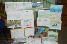 В рамках краткосрочного проекта по приобщению воспитанников к культурному наследию Республики Татарстан в фойе детского сада расположена выставка творческих работ "Город, в котором я живу".