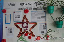 Согласно плана мероприятий ДОУ, посвящённых 70-летию Победы, в каждой группе был создан уголок боевой славы, где были выставлены рисунки, значки, атрибутика, посвящённые Великой Победе, а так же рассказы о подвигах прадедушек и прабабушек на фронтах и в тылу.