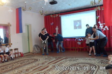 В преддверии дня защитника Отечества воспитанники нашего детского сада поздравили своих пап, дедушек и братьев, подготовив для них конкурсную программу "Шоу всемогущих пап".