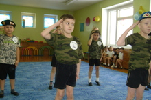 22 февраля в детском саду праздновали День защитника Отечества. Дети старших и подготовительных групп приняли участие в физкультурном досуге «Мы славные сыны Отечества». В ходе праздника мальчики соревновались в силе, меткости и ловкости, а девочки радовались их успехам, пели песни и читали стихи по теме праздника.