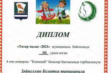 Муниципальный конкурс «Татар малае-2021»/ Муниципаль бәйге Татар малае – 2021. 23.04.2021 Воспитанник нашего детского сада Зайнуллин Булат занял почётное 3 место.Поздравляем!!!Молодец Булат!!!