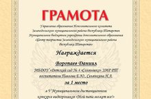 VМуниципальный дистанционный конкурс «Мой папа может все»/ Муниципаль бәйге “ Минем әти барысын да булдыра” 01.04.2021 Воспитанники нашего детского сада ежегодно принимают активное участие в конкурсе « Папа может» Воропаев Данил занял почетное 1 место! Поздравляем! Молодец! Спасибо организаторам конкурса.