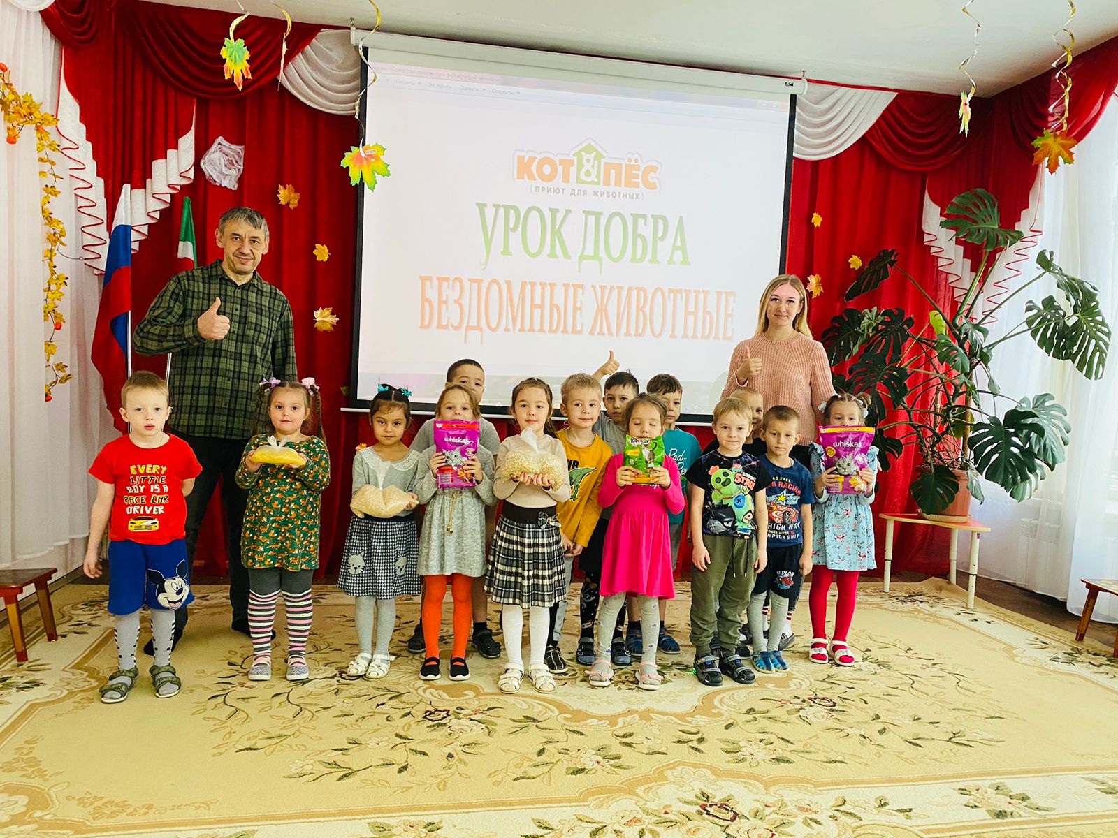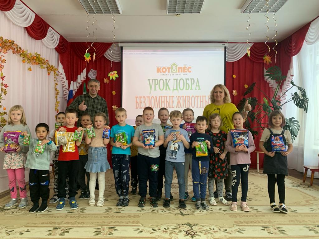 Безнең балалар бакчасында тәрбияләнүчеләр, ата-аналар һәм педагоглар "Көзге игелек атнасы"хәйрия акциясендә катнаштылар. Галиев Альберт Наил улы БФПБЖ директоры "мәче һәм эт Игелек дәресләре"үткәрде. "Яхшылык дәресләре" программасы үсеп килүче буынга әйләнә-тирә дөньяга һәм шул исәптән "кече кардәшләребезгә"карата кешелекле һәм җаваплы мөнәсәбәт тәрбияләүне максат итеп куя. Бу бик мөһим, ярдәм итү теләге гадәти күренешкә әйләнсен өчен, безнең балаларыбыз игелекле һәм ярдәмчел кешеләр булып үссен өчен, авыр хәлдә калганнарга ярдәм кулы сузуның мөһимлеген аңлыйлар, һәм кеше яки хайван мөһим түгел... Альберт Наильевич кечерәк кардәшләребезгә кешелекле мөнәсәбәтләре өчен рәхмәт хаты тапшырды.