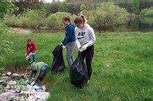 Воспитанники и родители убирают мусор на реке Аниш,Козловского район