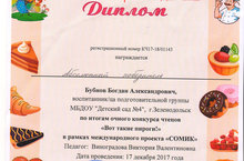 Поздравляем Бубнова Богдана и воспитателя группы №12 Виноградову Викторию Валентиновну, подготовившего воспитанника,ставшим Абсолютным победителем в очном конкурсе чтецов "Вот такие пироги!", в рамках международного проекта "Сомик"