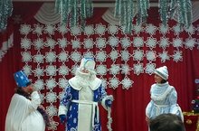 Ребята веселятся с Дедом Морозом и Снегурочкой, с увлечением рассказывают стихи о зиме, вместе со сказочными героями поют, танцуют, участвуют в весёлых играх и хороводах. Все воспитанники детского сада получили новогодние подарки и чудесное праздничное настроение! -