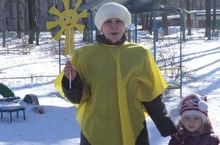 1. 2 марта наши педагоги изготовили 2-х метровую куклу- красавицу на городскую Масленицу.