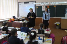 Сегодня состоялись встречи учащихся 1-х классов с инспекторами по пропаганде безопасности дорожного движения Шакировой З.В., Леонтьевой Ю.И., на которой детям еще раз напомнили правила поведения на улицах и дорогах нашего города. Юные пешеходы получили в подарок светоотражающие значки