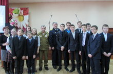 Сегодня в гимназии состоялся Урок мужества, который был посвящен годовщине вывода войск из Афганистана. В гостях у нас побывали участники боевых действий в Афганистане, представители Боевого братства г. Зеленодольска Хасанов Р.Р. и Тюгаев С.А. - бывшие выпускники нашей школы. Они поделились воспоминаниями о тех непростых годах, о своей службе на чужбине, честно и до конца выполнили свой воинский долг. Старшеклассники подготовили и показали литературно-музыкальную композицию. Встреча закончилась минутой молчания в память о павших солдатах и офицерах.