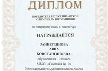 Поздравляем с победой на Республиканской олимпиаде по татарскому языку ученицу 10а класса Зайнетдинову Анну и учителя татарского языка Назмутдинову Милавшу Лотфулловну!