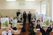 Сегодня представители Министерства и природных ресурсов РТ вручили небольшие сувениры учащимся 1-х классов — книжки Школа экологии.