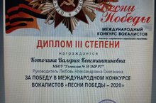 ПОЗДРАВЛЯЕМ!!! Ученицу нашей гимназии Котохину В. - призера Международного конкурса вокалистов "Песни победы - 2020" (руководитель Сметанина Л. А.) Молодцы! Мы гордимся вами!!!