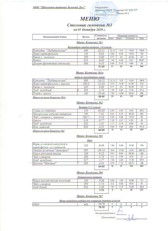 Меню (октябрь)