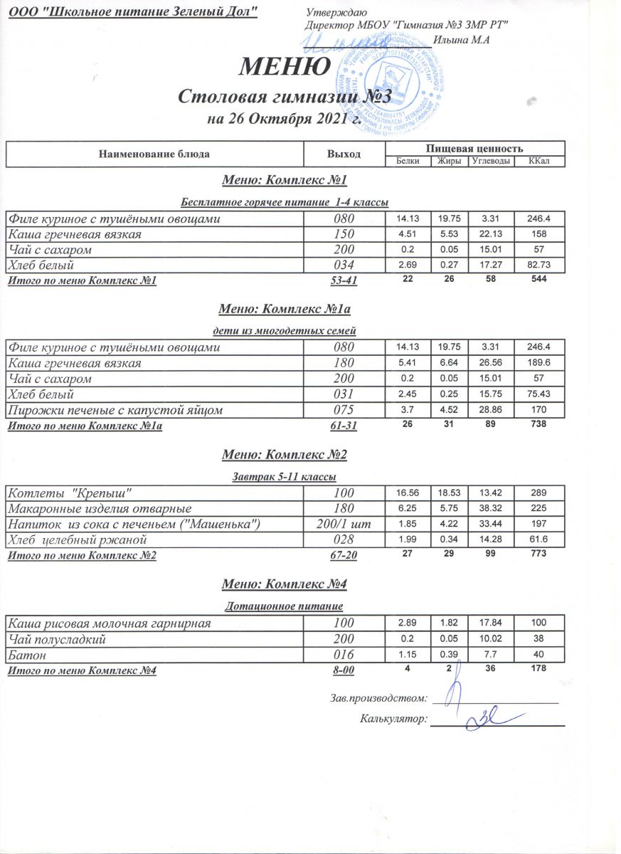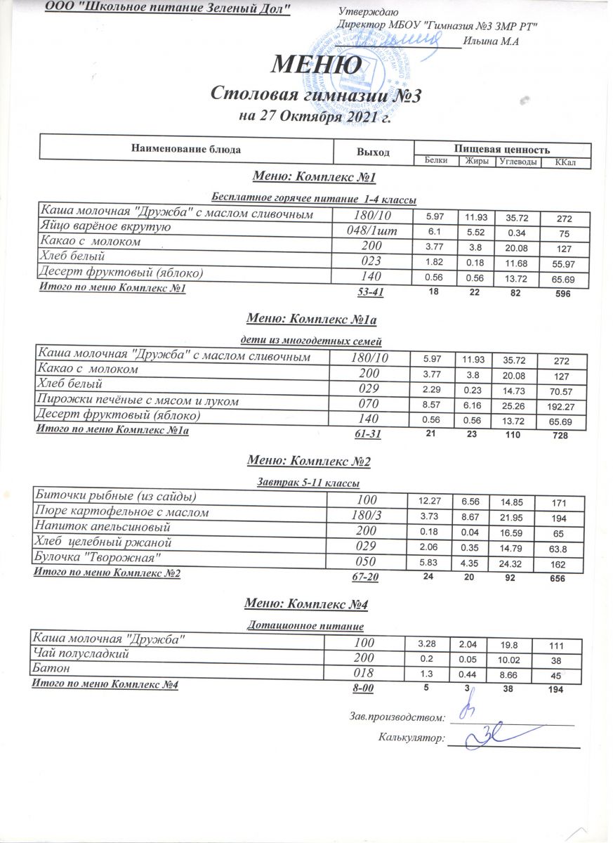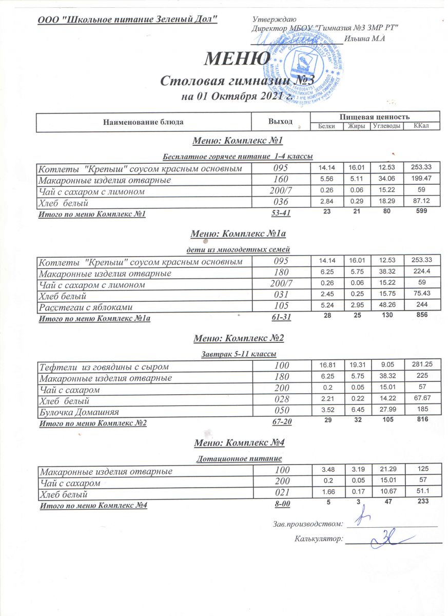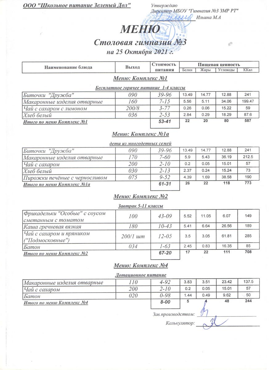 Меню (октябрь)