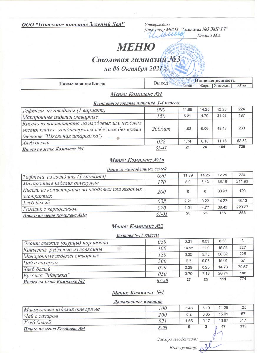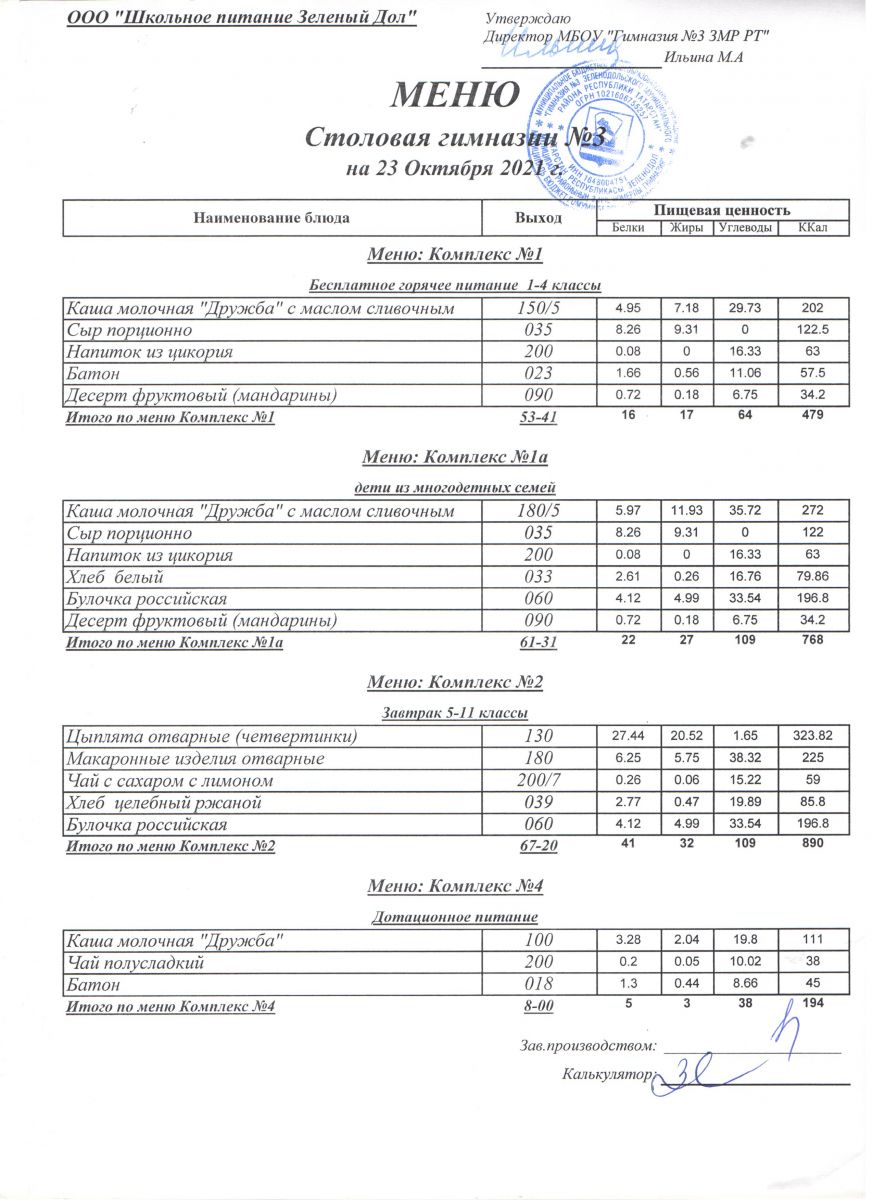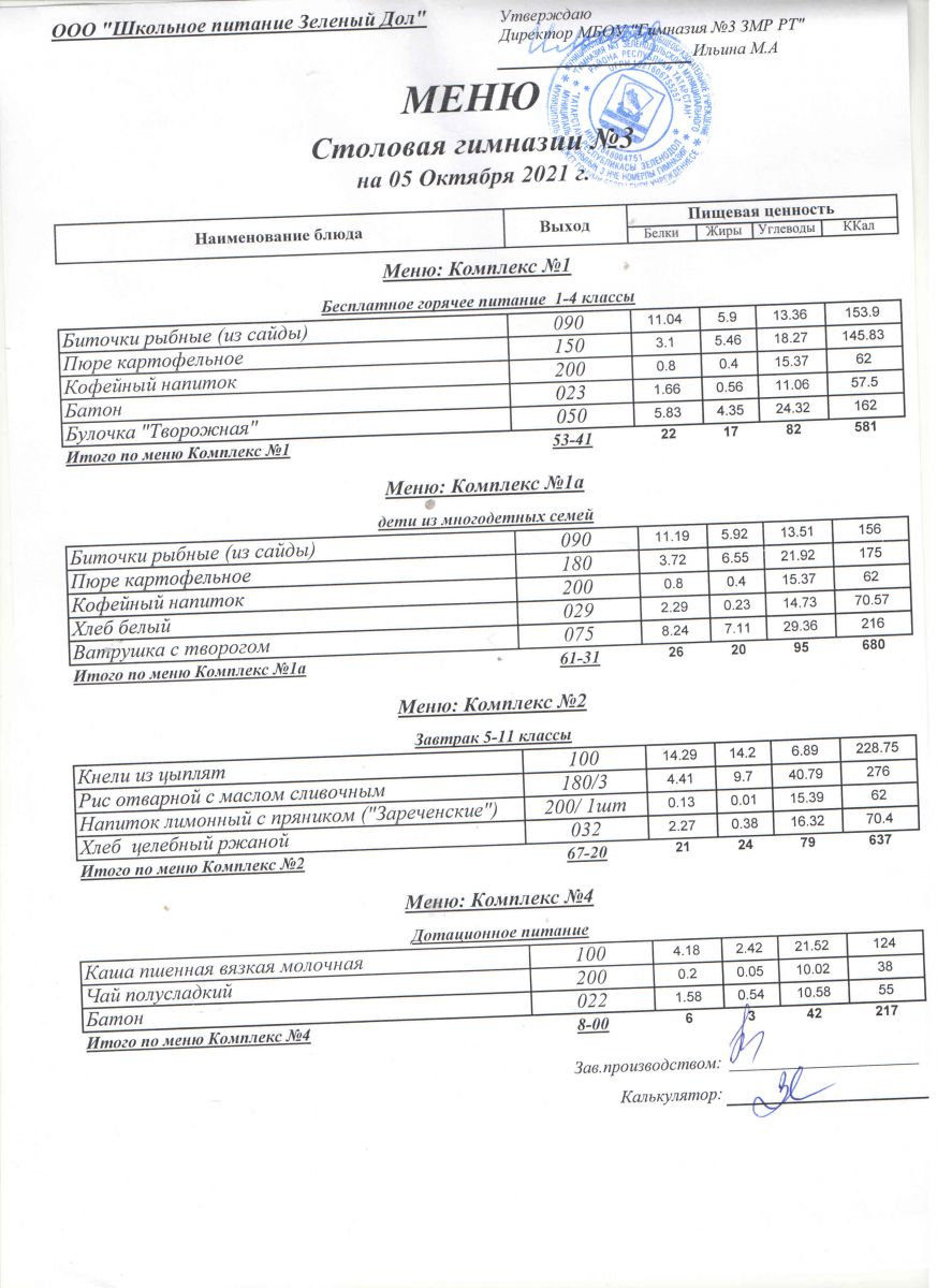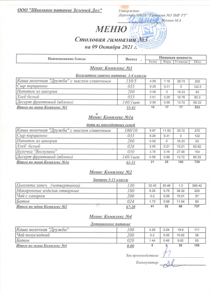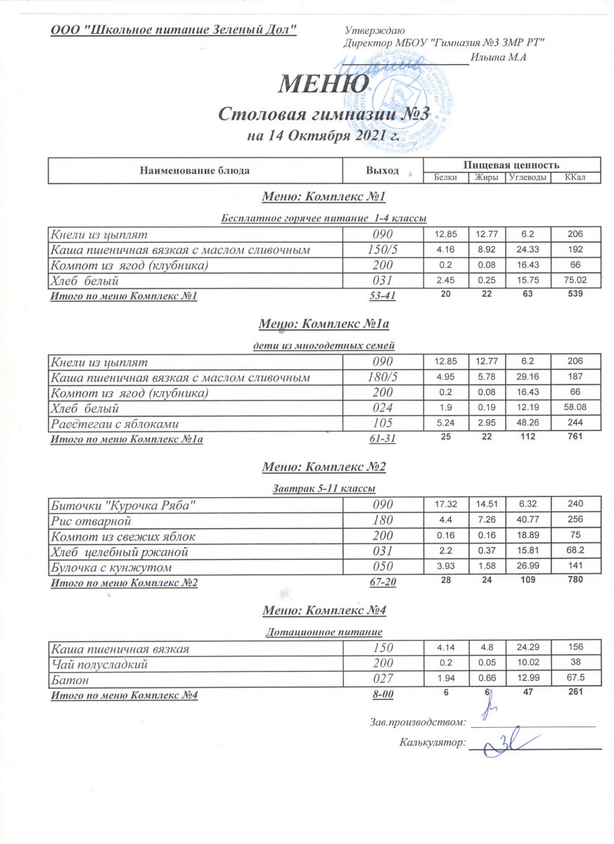 Меню (октябрь)