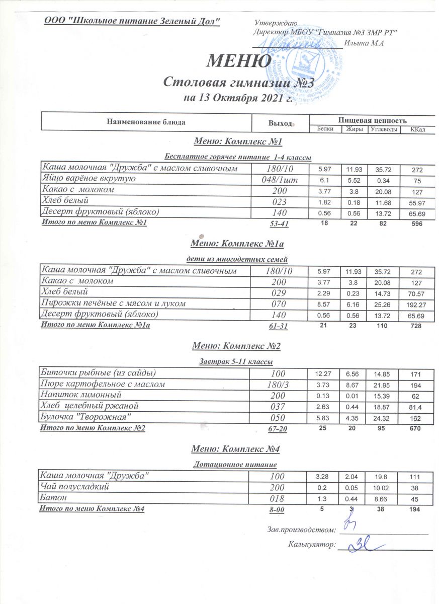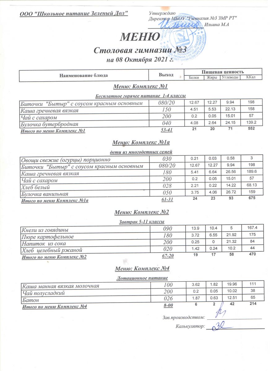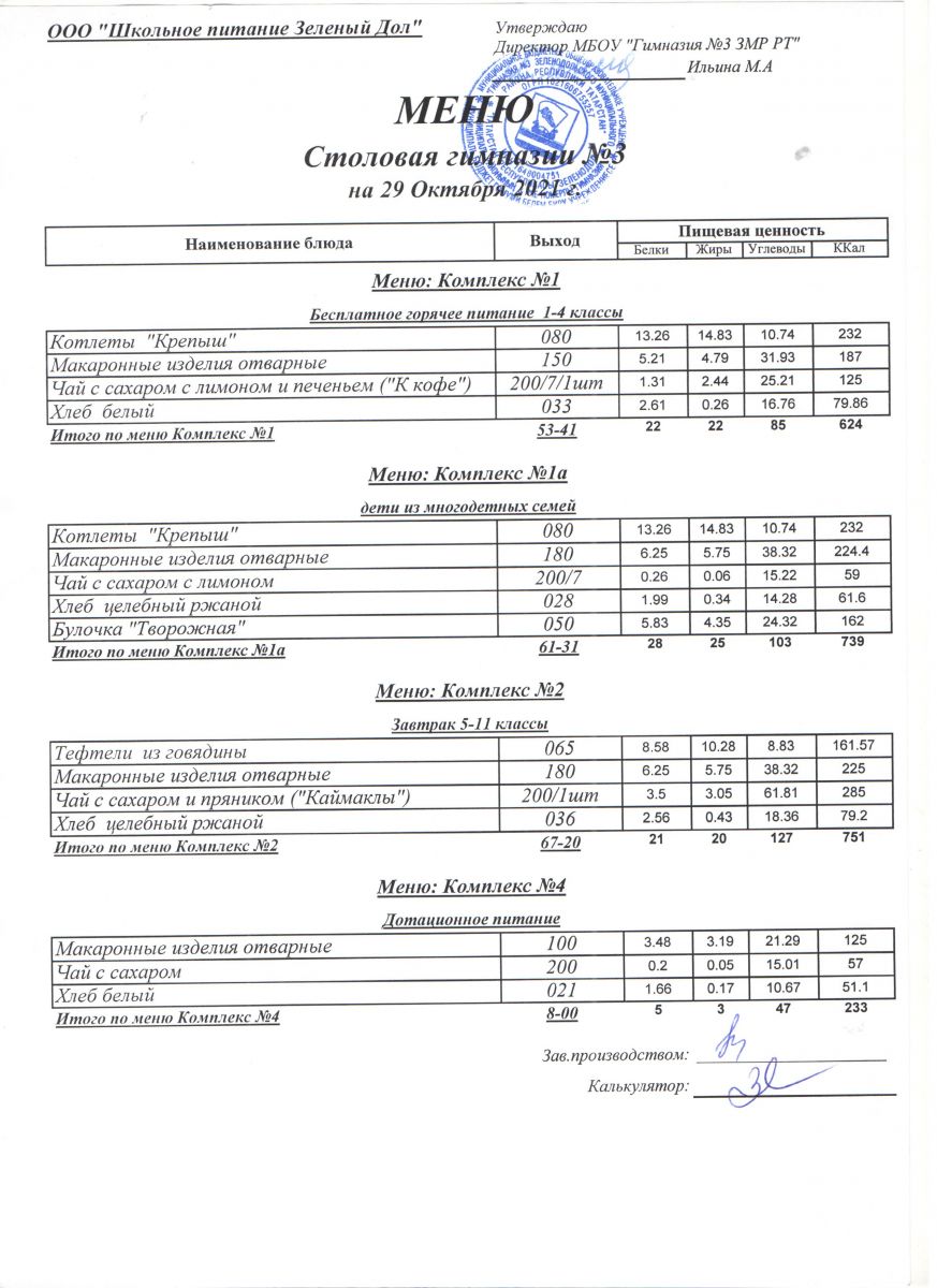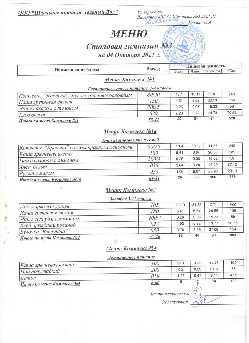 Меню (октябрь)
