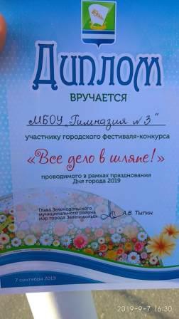 7 сентября гимназисты род руководством О.А. Ростовцевой приняли участие в муниципальном конкурсе "Все дело в шляпе", где презентовали свой арт-объект.