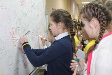 30 ноября в МБОУ «Гимназия № 3 ЗМР РТ» волонтеры гимназии под руководством педагога-психолога Багаутдиновой Ц.М. организовали и провели акцию «Мы за здоровый образ жизни» для учащихся 1-11 классов. Дети и учителя обводили свою руку и оставляли подписи на огромном стенде с лозунгом: «Мы за ЗОЖ! Присоединяйся к нам!». Потом могли пройти по 4 станциям и узнать о разных видах здоровья.