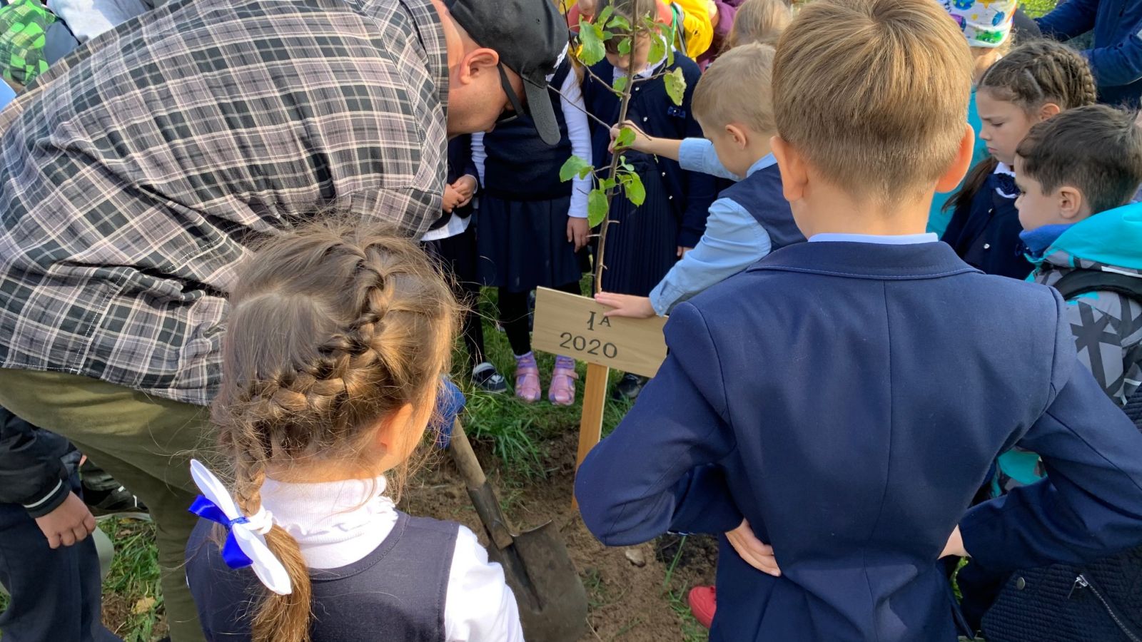 Первоклассники гимназии приняли участие в посадке яблоневого сада