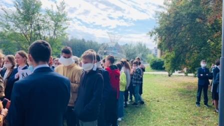 Сегодня, 14.09.2021 года, в гимназии состоялась учебная эвакуация. После голосового оповещения, сделанного директором гимназии , обучающиеся надели защитные маски и организованно покинули учебные кабинеты и здание гимназии.