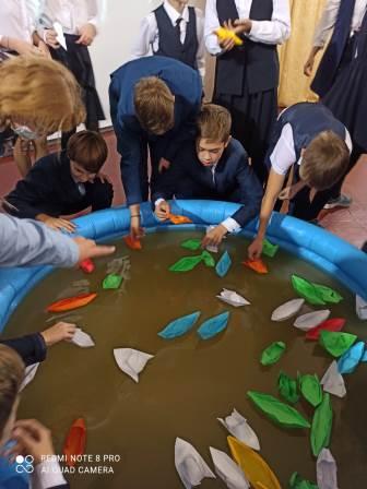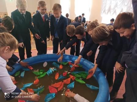 Два дня в актовом зале гимназии работает "Мастерская корабела". Параллели 4, 5, 6 классов под руководством старшеклассников мастерят бумажные корабли. Так интересно проходят музейные уроки, посвященные 15 - летию школьного музея истории судостроения на Волге.
