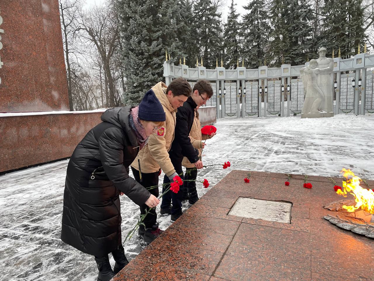 9 декабря в рамках празднования Дня Героев Отечества актив отряда Юнармии гимназии и "Волонтеров Победы" организовали митинг в Парке Победы с возложением цветов к Вечному огню.