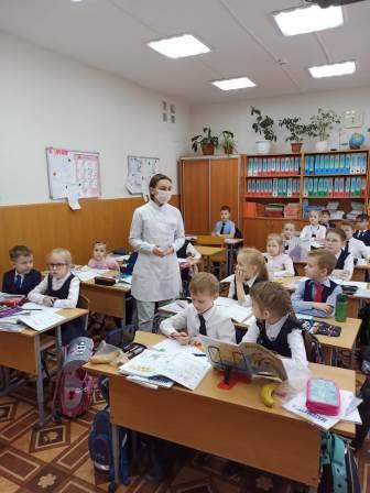 Опубликовано: 19.01.202219.01.2022 года студенткой 405 группы Зеленодольского медицинского училища Гильфановой А. с обучающимся 1,5,9 классов были проведены профилактические мероприятия "Профилактика дорсопатий". Использовались наглядные пособия. В кабинете для обучающихся 1 класса был размещён плакат, содержащий информацию о правилах организации рабочего и спального мест школьников.