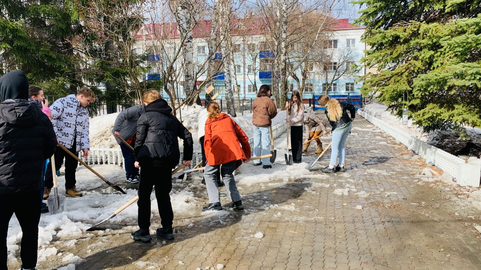 Опубликовано: 09.04.2022В гимназии начались традиционные мероприятия по санитарной очистке территории.