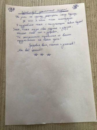 Опубликовано: 01.12.2022МБОУ «Гимназия №3 ЗМР РТ» поддержала Всероссийскую молодёжную акцию «Фронтовая открытка». Активисты школьного юнармейского отряда «Патриот» им. А.В.Суворова написали письма, в которых поздравили с предстоящим новогодним праздником военнослужащих, выполняющих боевые задачи в настоящее время. Для каждого юнармейца участие в данной акции — это минимальная часть того, как он может поддержать участников специальной военной операции. Российские солдаты для каждого юного патриота — образ настоящего героя, с честью и мужеством защищающего Родину.