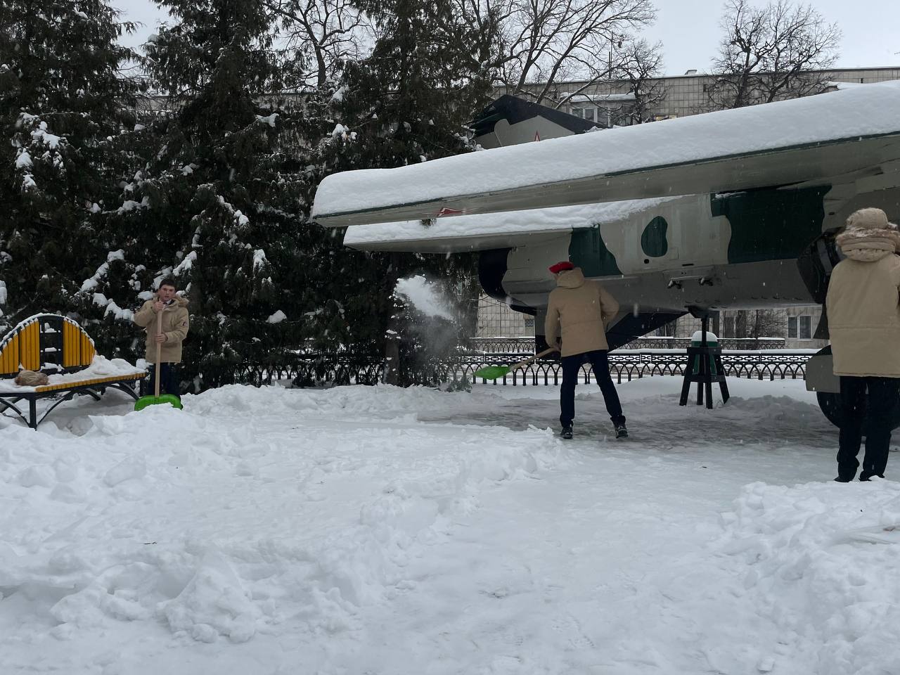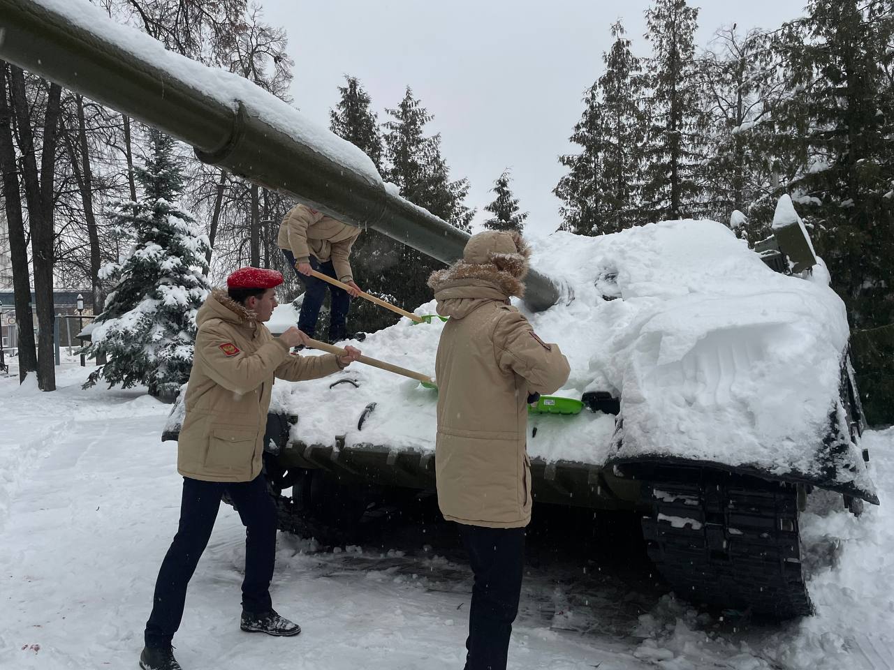 В минувшие дни активисты отряда занялись уборкой снега на территории одной из главных достопримечательностей города - Парка Победы.