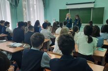 Гимназию с профориентационной беседой посетили представители Тетюшского государственного колледжа гражданской защиты МЧС 21.04.2022