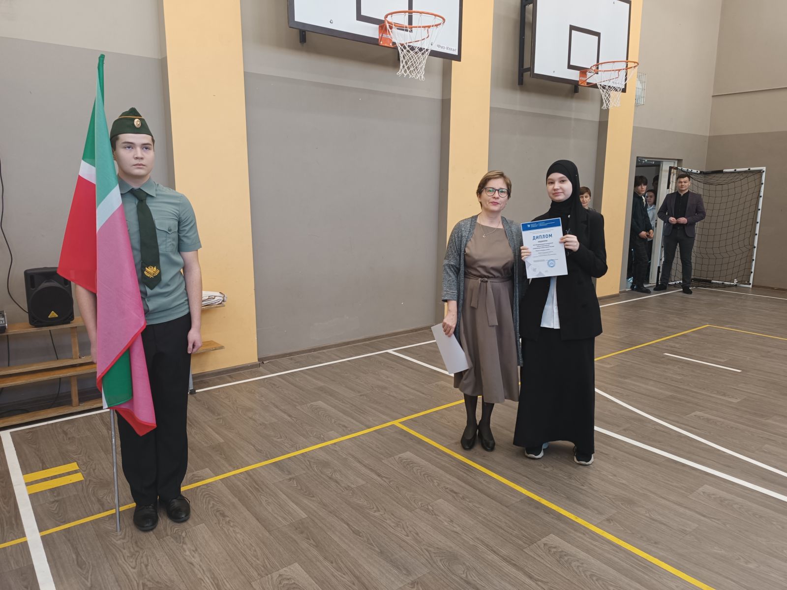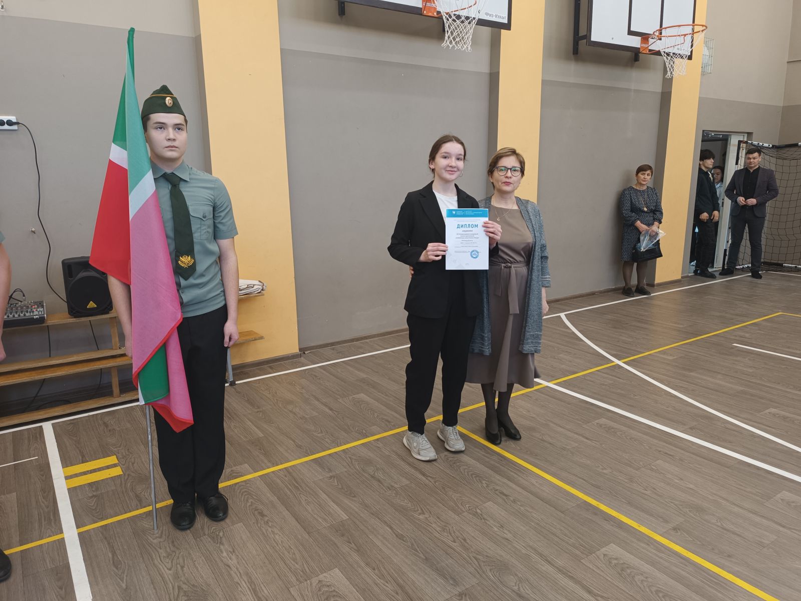 Сегодня на еженедельной линейке поднятии флагов и исполнения гимнов Российский Федерации и Республики Татарстан были вручены дипломы ученикам за их достижения.