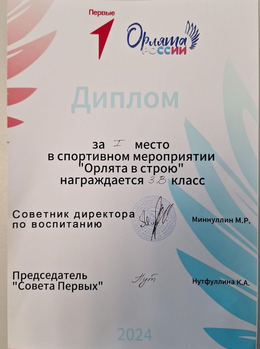 Опубликовано: 21.02.2024Бүген гимназиянең Алдынгылар бүлеге 2-4 сыйныф укучылары өчен тәрбия буенча директор киңәшчесе һәм беренчел бүлек рәисе белән берлектә «Орлята в строю» спорт чарасын үткәрде. Чарада Татарстан Республикасы Зеленодольск муниципаль районы башлыгы ярдәмчесе, Зеленодольск муниципаль районында «Алдынгылар хәрәкәте» Россия балалар һәм яшьләр хәрәкәтенең җирле бүлеге җитәкчесе Калистратова Веста Владимировна катнашты. Балалар төрле конкурсларда катнаштылар һәм «Россия бөркете» кубогы өчен көрәштеләр. Гран-прины 3А сыйныфы, I урынгы 3в сыйныфы алды, котлыйбыз!