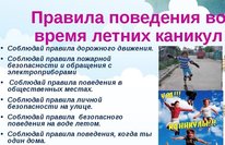 Правила поведения во время летних каникул 27.05.2020