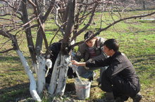Сегодня в нашей школе прошел Средник. Учащиеся старших классов и учителя дружно белили деревья, убирали пришкольную територию.