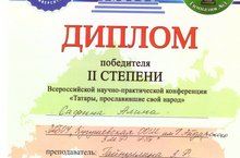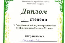 Учительница нашей школы Шакирова Лейсан Ильгизяровна награждена дипломом II степени в IV Республиканской научно-практической конференции им. Махмута Хусаина. Поздравляем!