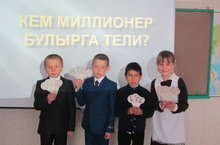 Бүген 1 нче сыйныф укучылары арасында "Кем миллионер булырга тели?" диеп исемләнгән уен оештырылды. Алар әдәбият буенча белемнәрен күрсәттеләр. 11 бишле алып, Гизатуллина Ясминә "миллионер" булды. Котлыйбыз аны. Афәрин!