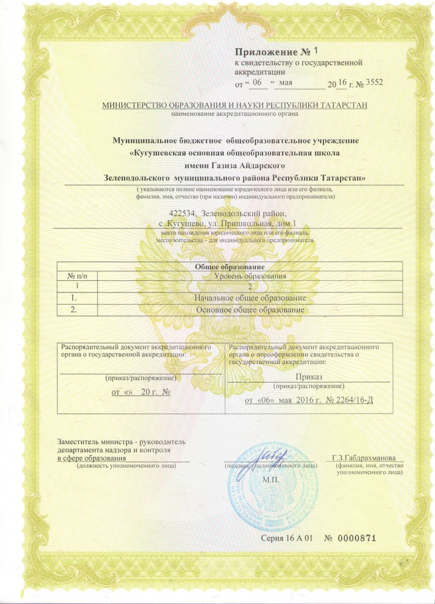 | Короткое название: | МБОУ "Кугушевская ООШ им. Г. Айдарского ЗМР РТ" |