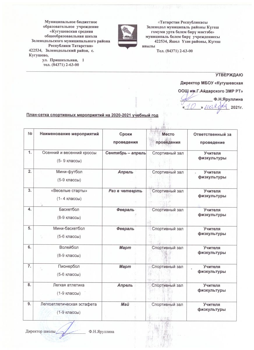 Адрес: 422534, РТ, Зеленодольский район, с. Кугушево, ул. Пришкольная,1