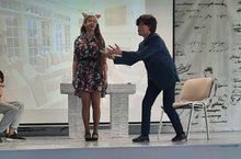 Театральный коллектив на английском языке The first принял участие в заключительном этапе республиканского конкурса школьных театров на английском языке и жюри особенно выделил коллектив за лучший английский язык среди всех участников конкурса, в том числе среди школ с углубленным изучением иностранных языков. Но это еще не всё: особую номинацию заслужил ученик 8А класса Гаврилов Андрей, сыгравший роль отца. Его выделили за образную, выразительную речь. Искренне поздравляем Андрея и желаем ему дальнейших успехов!