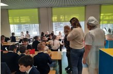 Родительский контроль за питанием в составе родителей 4-х классов Кондратьевой Е.В. и Ивановой Т.И. присутствовали на завтраке учеников начальных классов. Родители поговорили с детьми, узнали их вкусовые предпочтения, поинтересовались нравится ли им школьное питание. Была снята проба завтрака, качеству приготовленных блюд была дана высокая оценка.