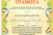 Команда учащихся лицея стала победителем муниципального этапа республиканской военно-спортивной игры "Зарница 2015" среди общеобразовательных организаций ЗМР РТ. Ребята готовятся к участию в республиканском этапе. Пожелаем им удачи!