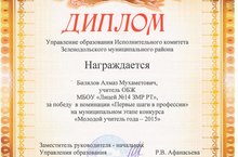 Преподаватель-организатор ОБЖ Билялов А.М. одержал победу в номинации "Первые шаги в профессии" на муниципальном этапе конкурса "Молодой учитель года-2015". Поздравляем!