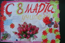 Накануне празднования 8 марта в лицее прошел конкурс стенгазет. Жюри конкурса, в состав которого вошли завуч по воспитательной работе Т.Н. Строкина и учителя, преподающие изоискусство рассмотрело каждую работу и оценило ее по ряду критериев (аккуратность исполнения, оформление фона, информационная насыщенность, оригинальность наполнения и др.) В результате первое место присуждено 5 "А" классу, на втором месте - 6 "Б" класс.