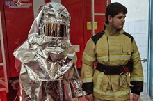 При посещении пожарной части все желающие могли примерить обмундирование современного пожарного 09.03.2023