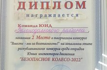 Поздравляемкоманду ЮИД (руководитель Н.И.Гафиатуллина), занявших 2 место в творческом конкурсе "Вместе - мы за безопасность!" на зональном этапе республиканского конкурса среди отрядов юных инспекторов движения "Безопасное колесо - 2022" 27.04.2022