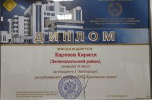 Карпеев Кирилл занял 7 место на станции № 3 «Автогородок» на XXIV республиканском конкурсе юных инспекторов движения «Безопасное колесо – 2018».